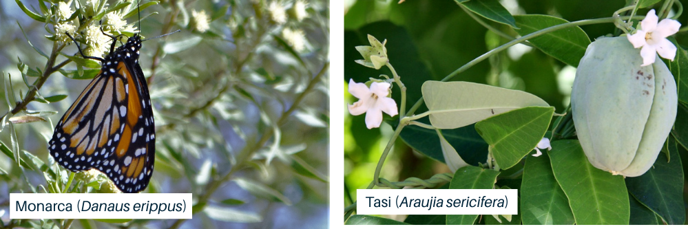 Hospedera: Asclepia nativa (Asclepia mellodora), Tasi (Araujia sericifera)